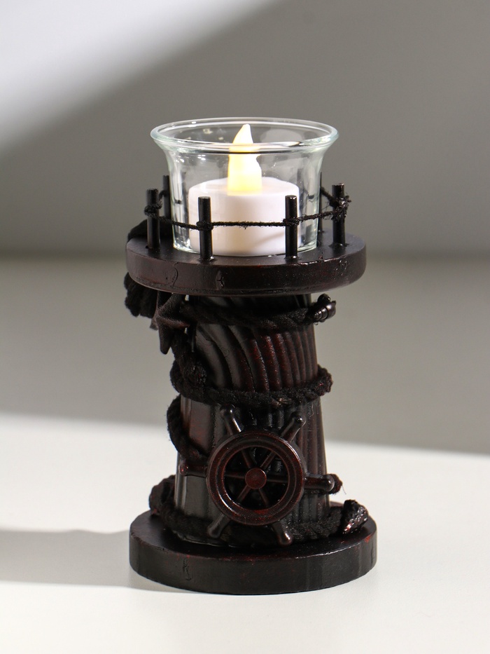 Подсвечник на 1 свечу «Маяк и штурвал», дерево, стекло, 8.5×8.5×15.5 см