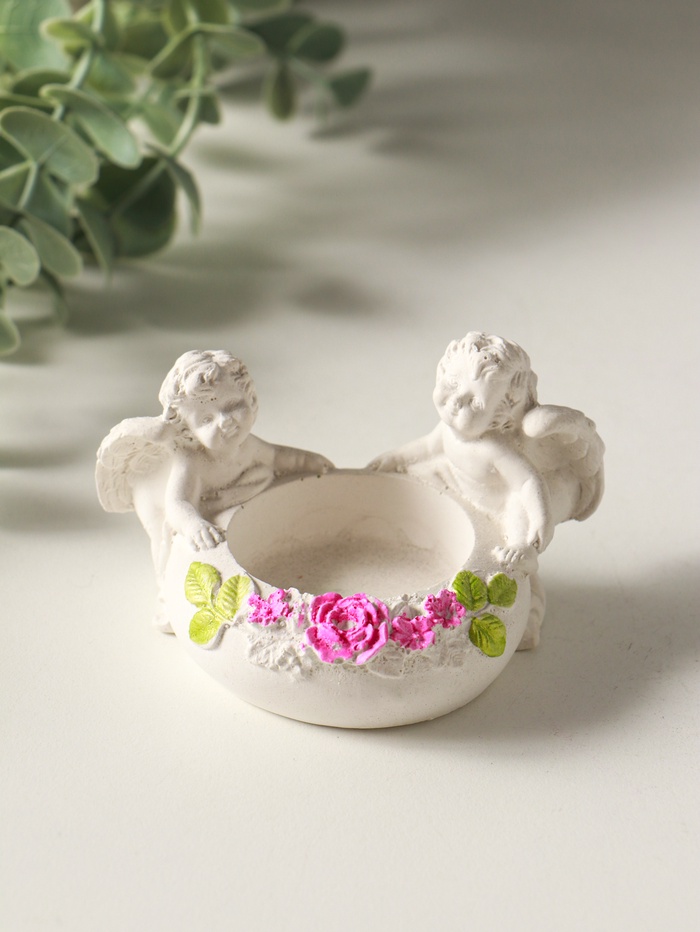 Подсвечник на 1 свечу «Ангелы с цветами» 5×8×7 см, белый с росписью