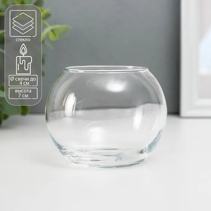 Стеклянный подсвечник на 1 свечу «Шар», прозрачный, 7×9×9 см