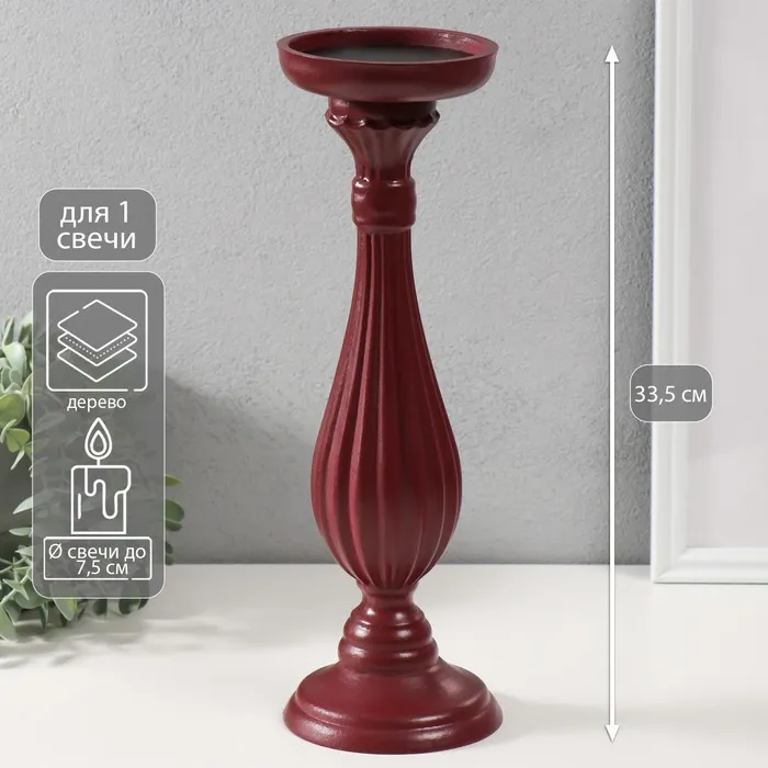 Деревянный подсвечник на 1 свечу «Элегант», бордо состаренный, 12.5×12.5×33.5 см