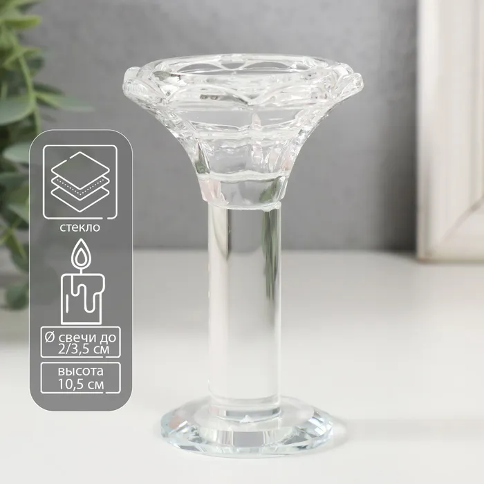 Стеклянный подсвечник на 1 свечу «Бутон на ножке», d=2 см и 3.5 см; 6.7×6.7×10.5 см