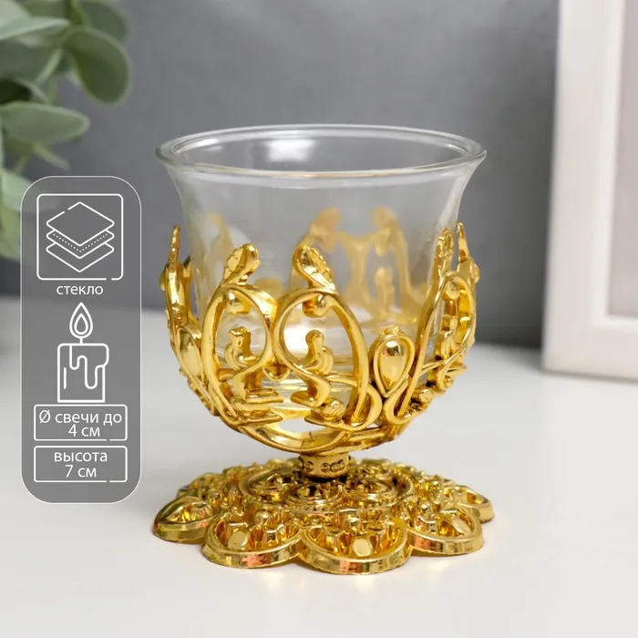 Подсвечник стекло 1 свеча "Узор", цвет золотистый
