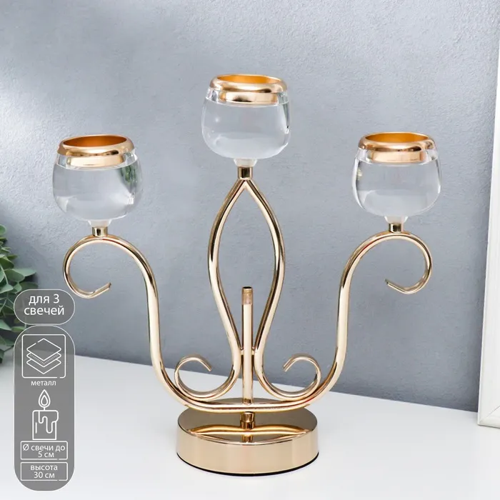Подсвечник металл, акрил на 3 свечи "Жардин" золото 30х12х31 см