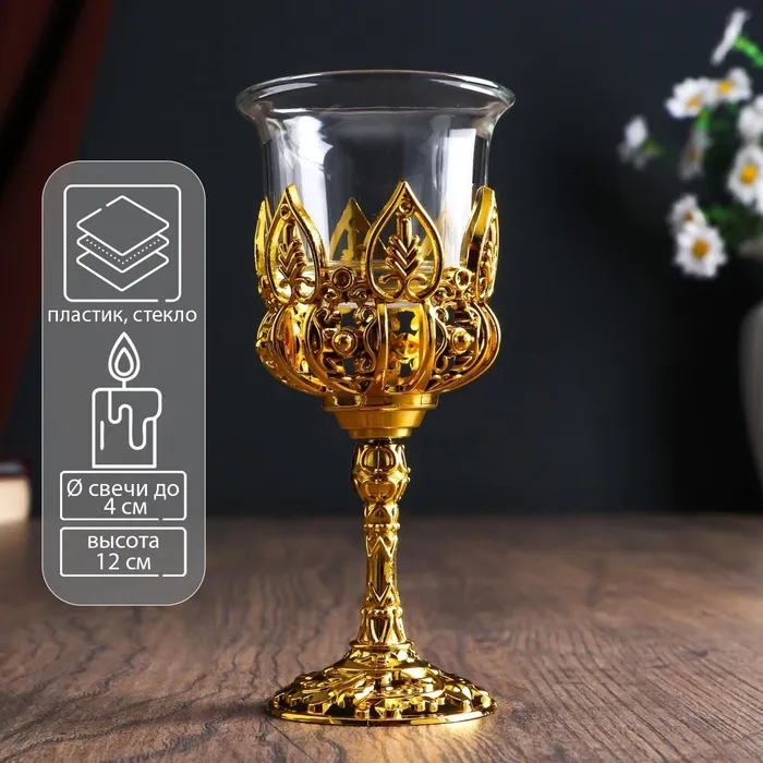 Подсвечник стекло "Наслаждение" 12*6,5*6,5 см, золото