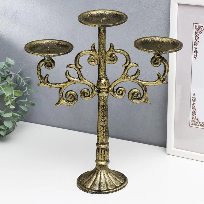 Металлический подсвечник на 3 свечи «Канделябр. Ажур», чугун, золотая патина 32×24×9.5 см