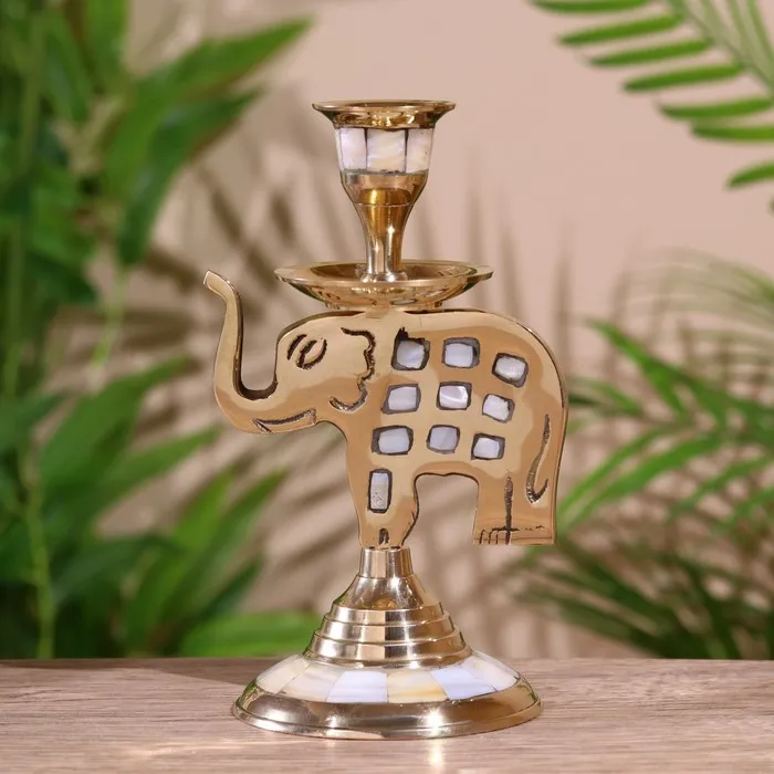 Подсвечник "Слон" латунь, перламутр 9х9х15 см