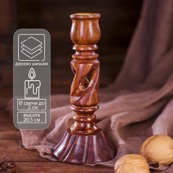 Подсвечник "Чимахи" дерево Джати, d 4 см 10х10х15 см, цв. темно-коричневый
