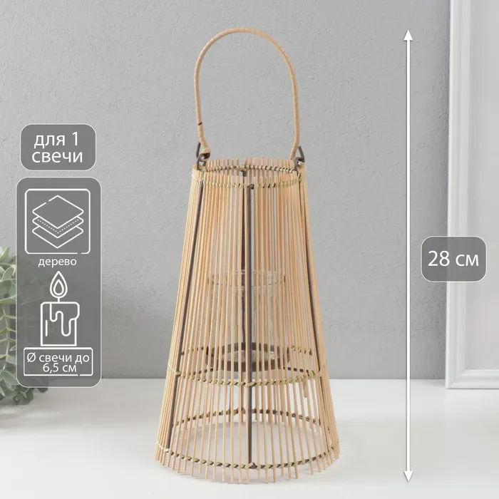 Деревянный подсвечник-фонарь на 1 свечу «Лоза», натуральный, 10×18×28 см