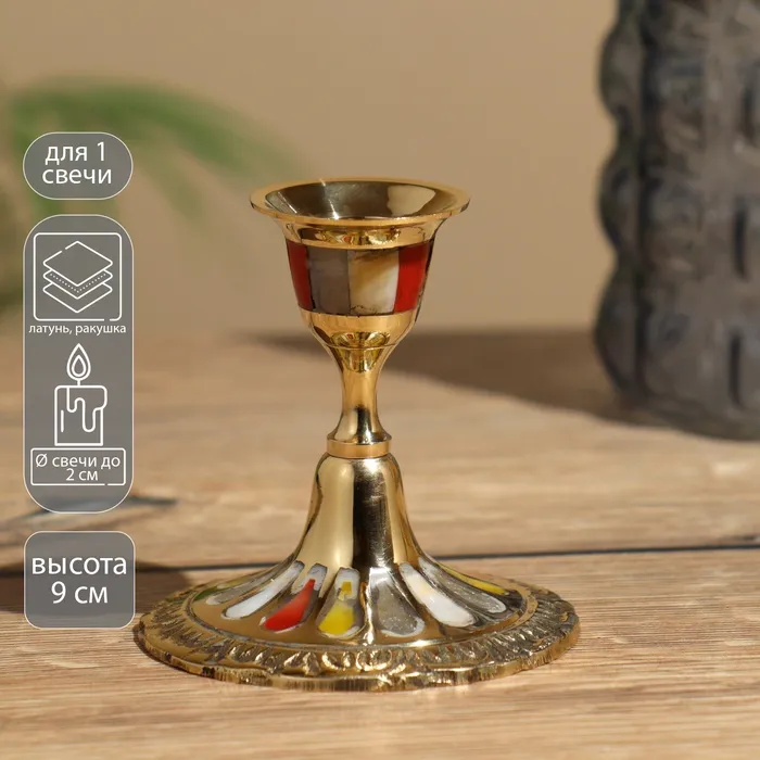 Подсвечник "Лукка" латунь, перламутр 12 см
