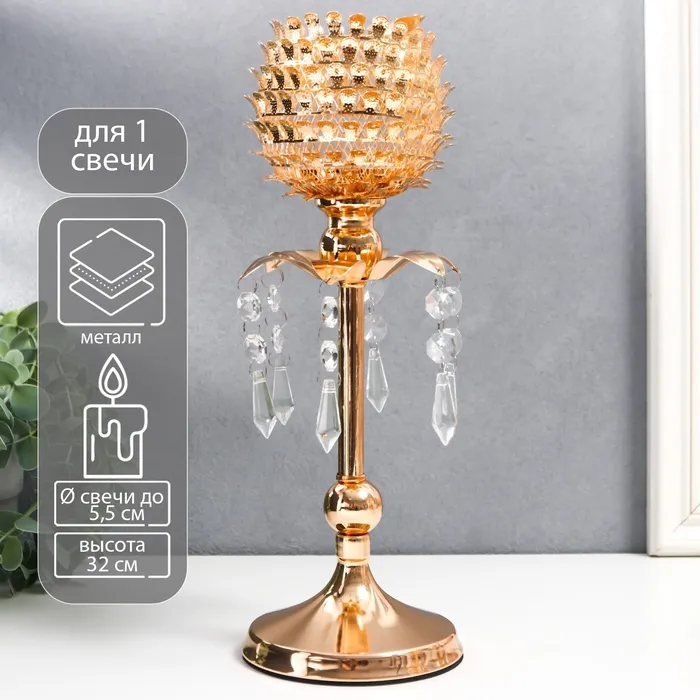 Подсвечник металл на 1 свечу «Цветок чешуйчатый», золото, 32×11×11 см