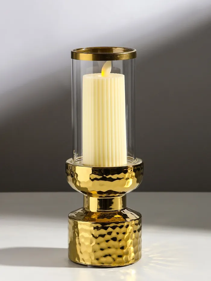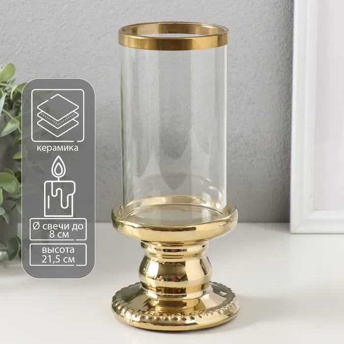 Подсвечник на 1 свечу «Веллис», керамика, стекло, d=8 см, золото, 10×10×21.5 см