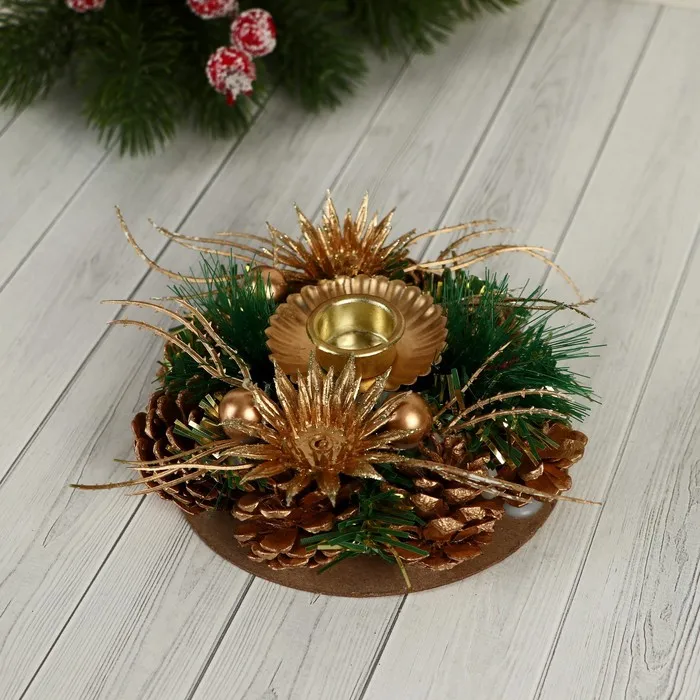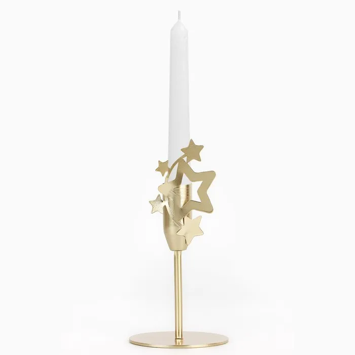 Подсвечник новогодний «Новый год: Звезды», золотой, 7.4×15.3 см, диам. под свечу 2.2 см