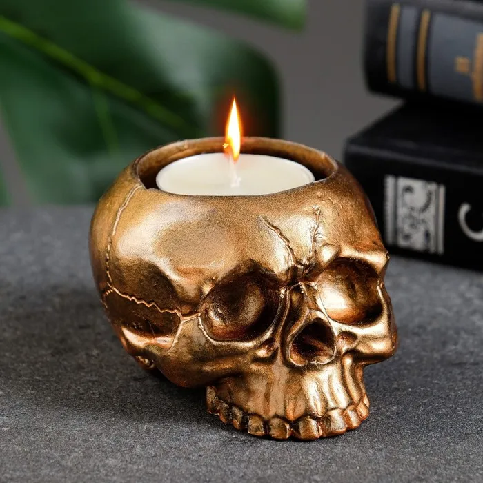 Подсвечник на 1 свечу «Череп», гипс, бронза, 9×7×5 см