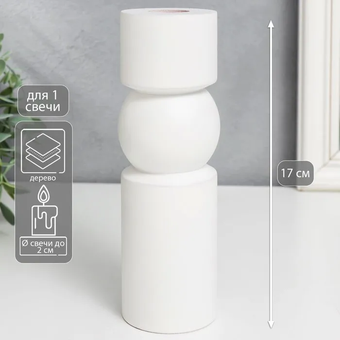 Деревянный подсвечник на 1 свечу «Норд», белый, 17×5.5×5.5 см