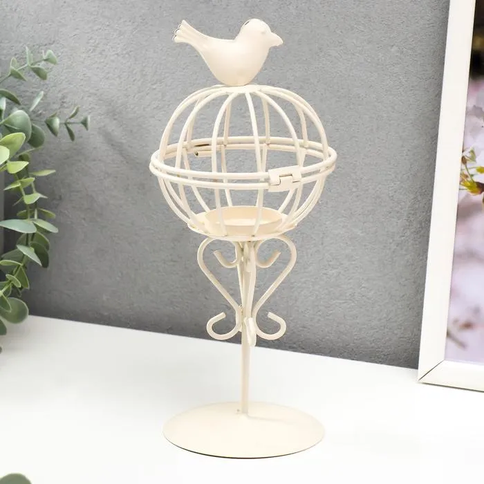 Металлический подсвечник-фонарь 1 свеча «Птица и гнездо», белый, 23×10×10 см