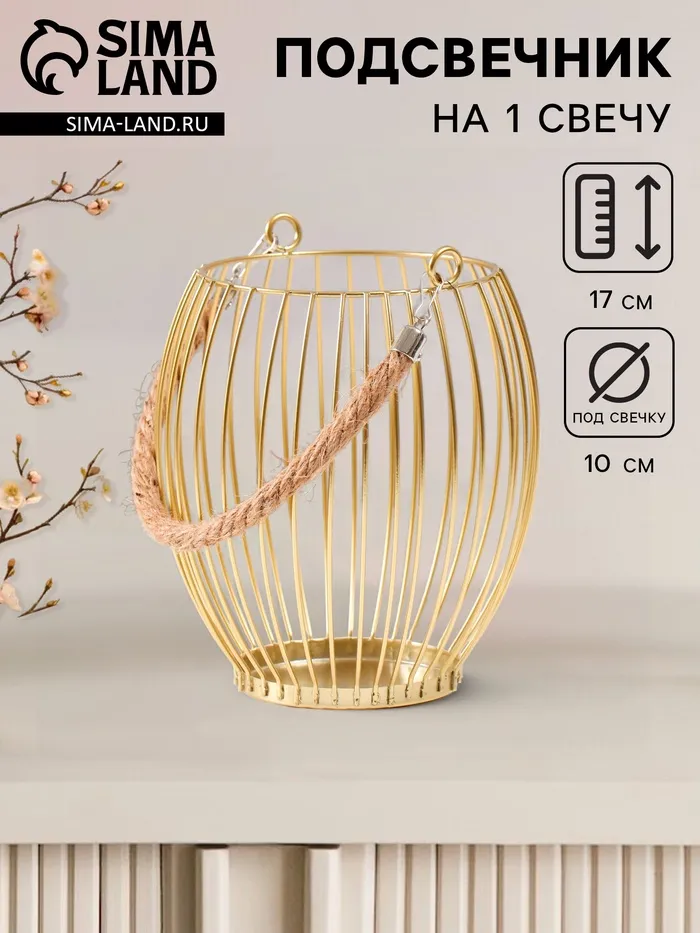 Подсвечник металл на 1 свечу «Корзина», d=10 см, бронза, 15×15×17 см