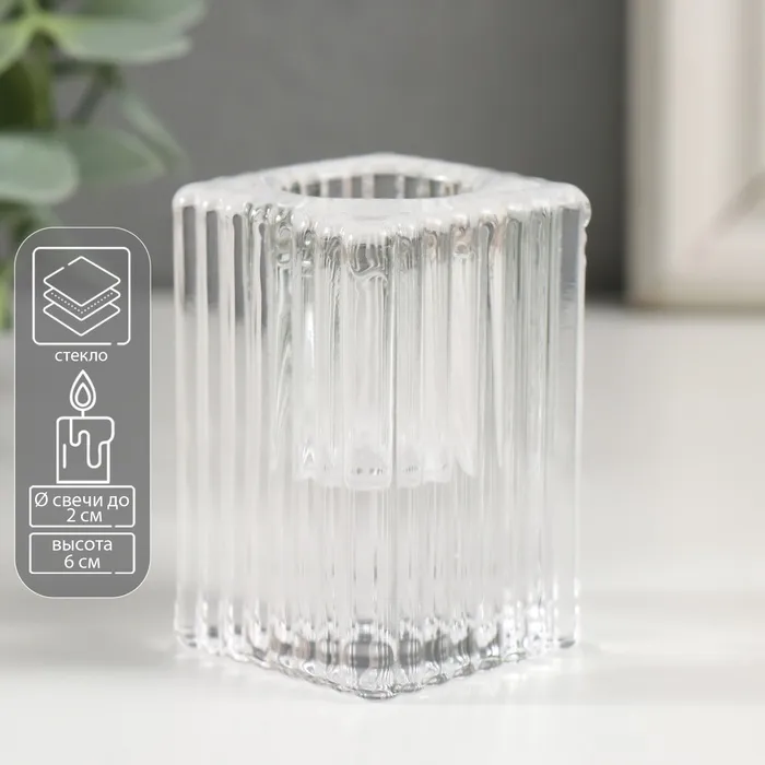 Подсвечник стекло на 1 свечу "Столбик" d- 2 см прозрачный 2х2х6 см