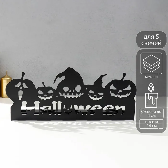 Металлический подсвечник на 5 свечей «Хэллоуин. Тыковки», чёрный, 14×29.5×6 см