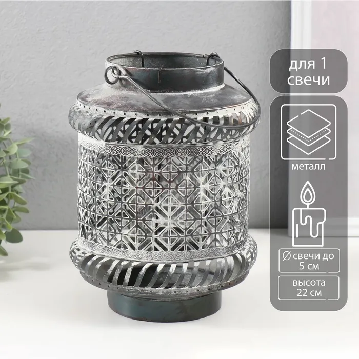 Металлический подсвечник-фонарь на 1 свечу «Узоры», d=5 см, 16.5×16.5×22 см