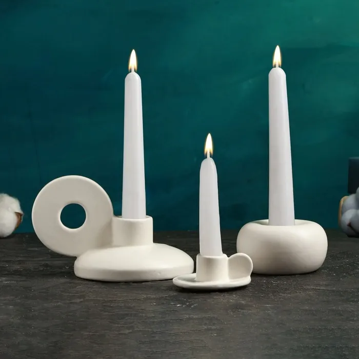 Набор подсвечников керамика TAKE IT EASY «Лео, Саймон, Эдвард», белый глянец, 3шт., 8×10 см; 3×6 см; 4×7 см