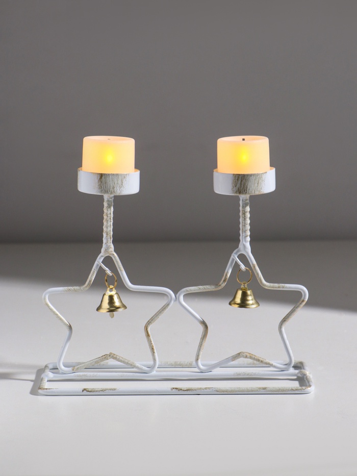 Подсвечник металл на 2 свечи "Две звезды" белый с патиной d=5 см 18,5х7,3х14,8 см