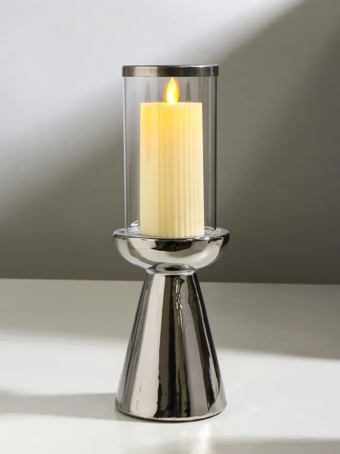 Подсвечник на 1 свечу «Гладь», керамика, стекло, d=8 см, серебро, 10×10×29.5 см