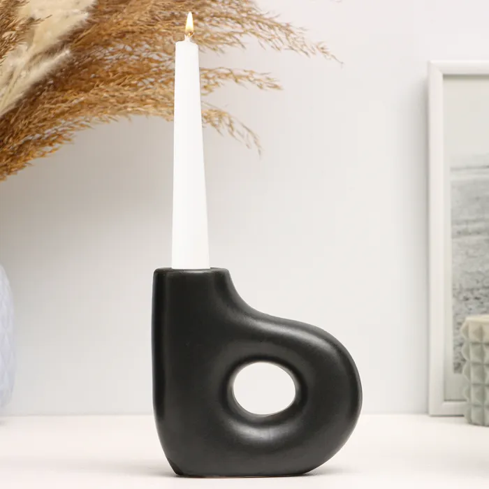 Подсвечник на 1 свечу TAKE IT EASY «Лунд», керамика, чёрный глянец, 4×4×8 см