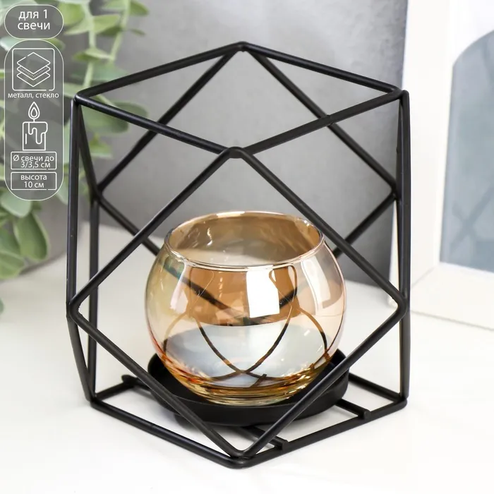 Подсвечник на 1 свечу «Квадраты и треугольники», металл, стекло, 10×15×15 см