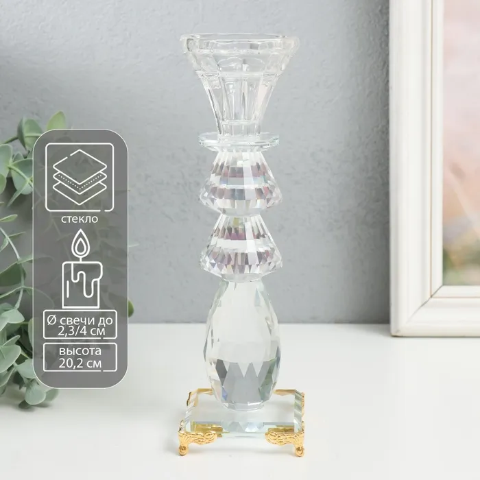 Подсвечник стекло на 1 свечу "Бутон и два листочка" прозрачный d=2,3 и 4 см 6,5х6,5х20,2 см 970283