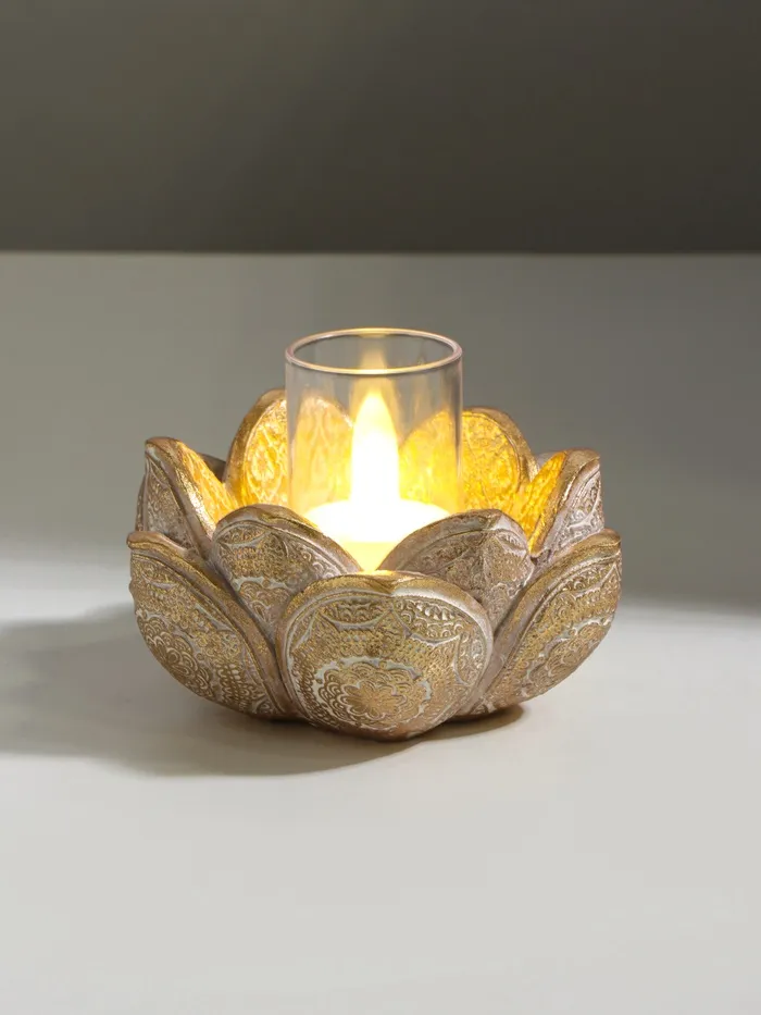 Подсвечник на 1 свечу «Лотос», полистоун, золото, 10.5×12×9 см