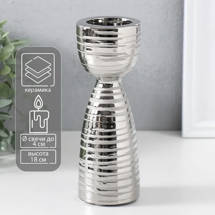 Подсвечник керамика на 1 свечу «Зебра», d=4 см, серебро, 6.5×6.5×18 см