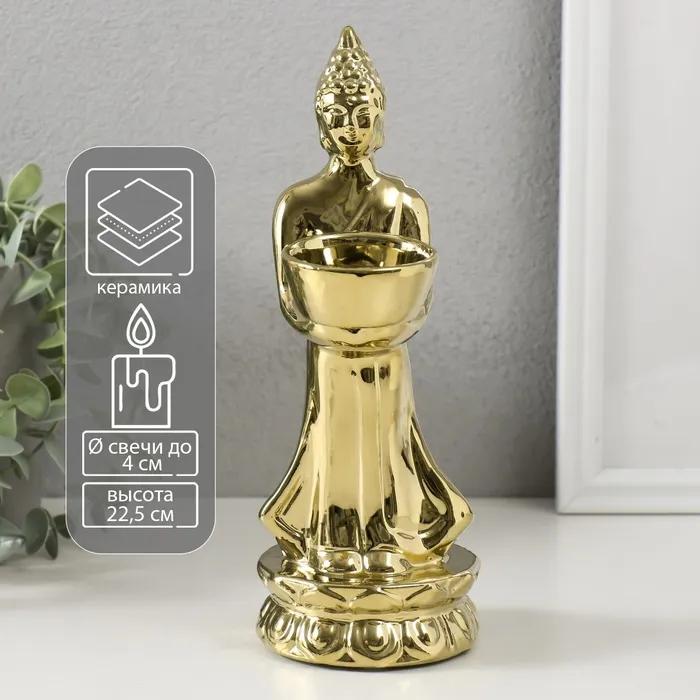 Подсвечник керамика на 1 свечу «Будда», d=4 см, золото, 8×11×22.5 см