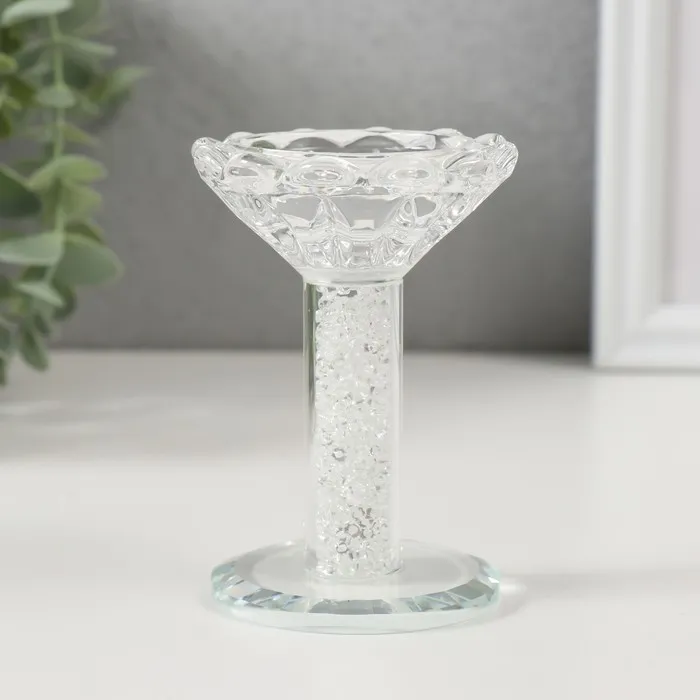 Стеклянный подсвечник на 1 свечу «Лёд», прозрачный, d=2 см, 8×8×10 см