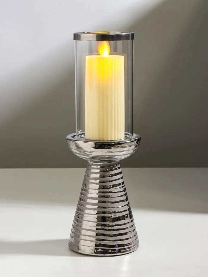 Подсвечник на 1 свечу «Монти», керамика, стекло, d=7.5 см, серебро, 9×9×31.5 см
