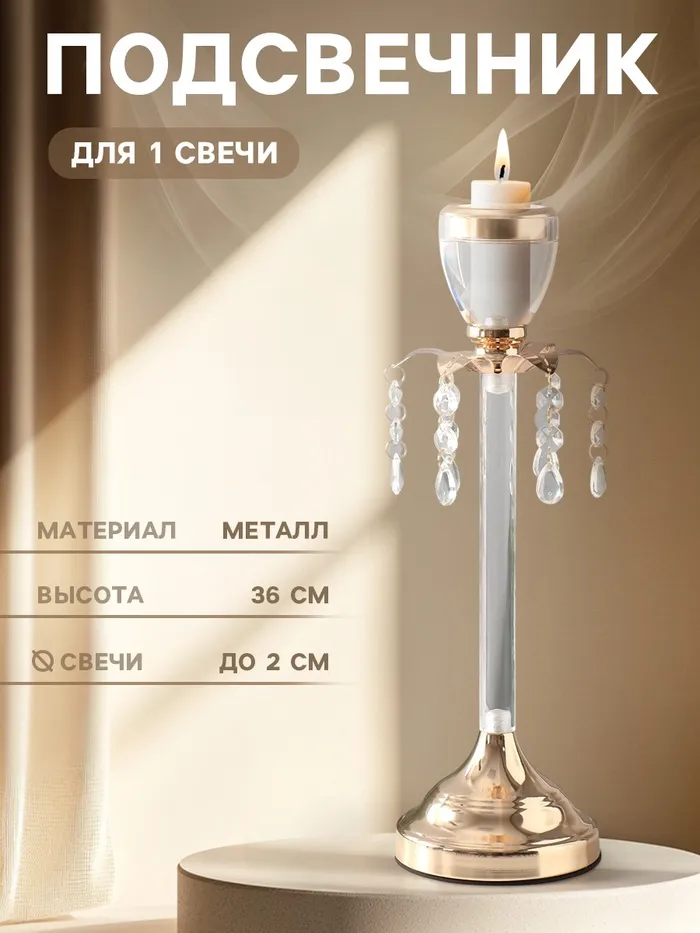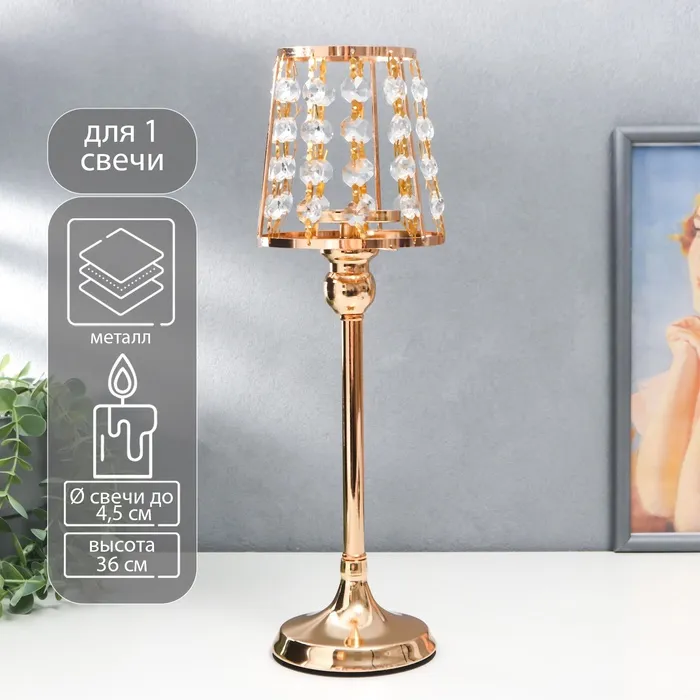 Подсвечник металл на 1 свечу "Кристаллы - Лампа" золото 36х13х13 см