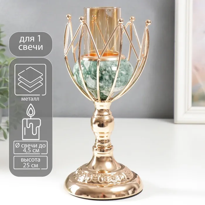 Подсвечник металлический «Изысканность», стекло, на 1 свечу, цвет золото, 9.5×9.5×22.5 см