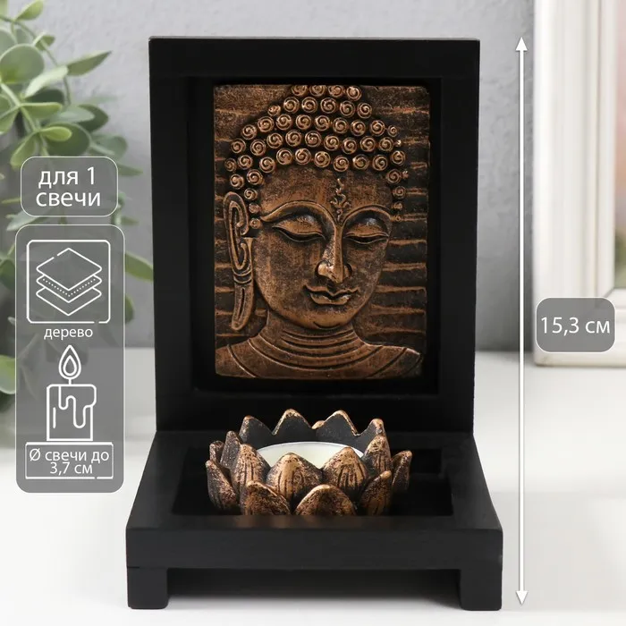Подсвечник дерево на 1 свечу "Будда с лотосом" 10,6х10,8х15,3 см