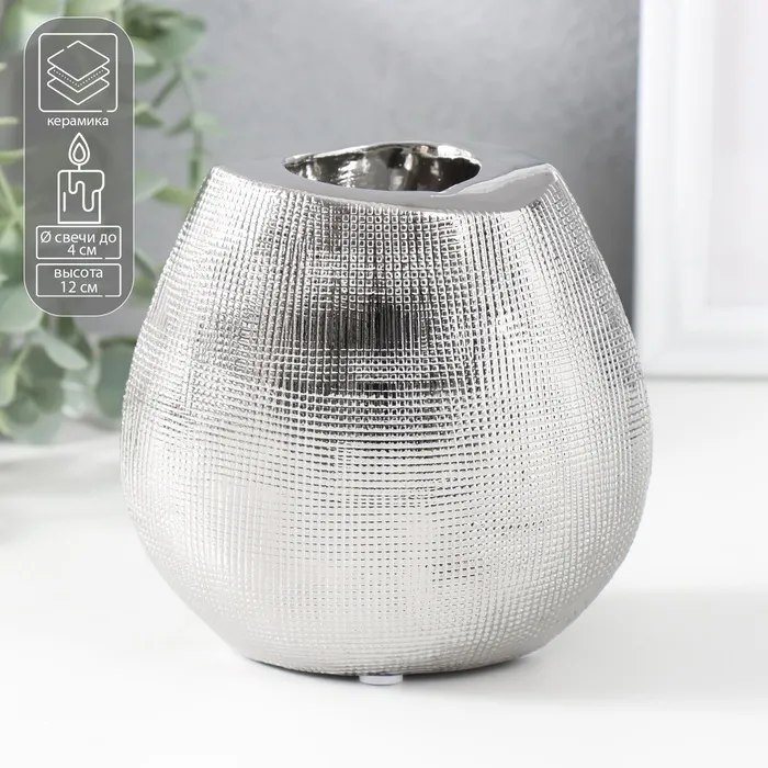 Подсвечник керамика на 1 свечу «Глория», d=4 см, серебро, 12.5×8×12 см