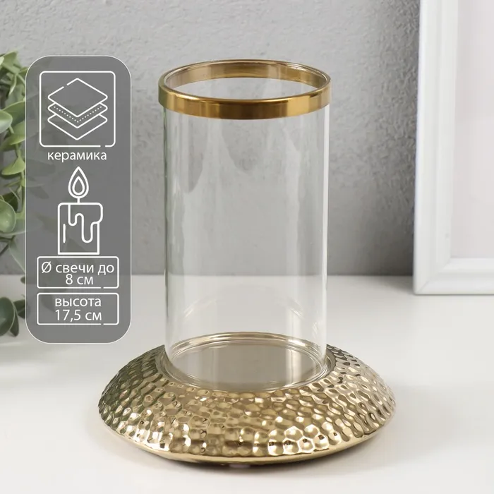 Подсвечник на 1 свечу «Верна», керамика, стекло, d=8 см, золото, 14.5×14.5×17.5 см
