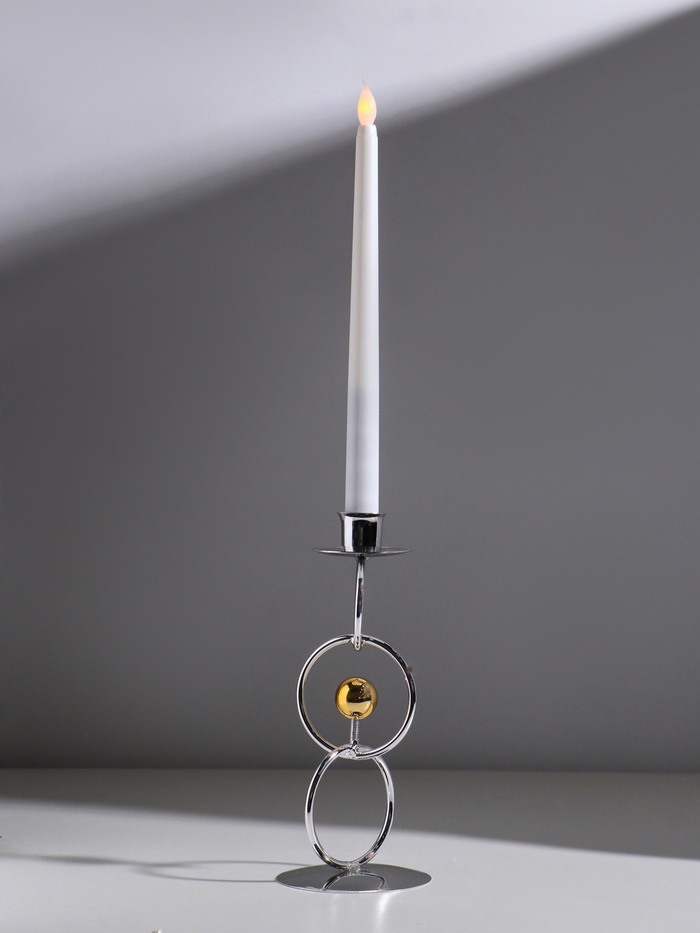 Подсвечник металл на 1 свечу "Кольца и шарики" серебро с золотом d=2,5 см 9х9х22 см