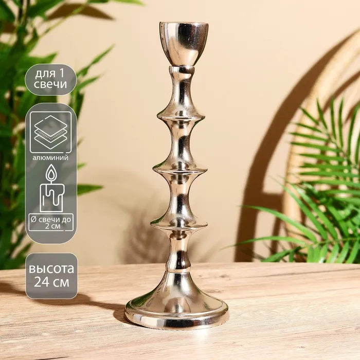 Подсвечник алюминий "Кольца" на 1 свечу 9х9х24 см
