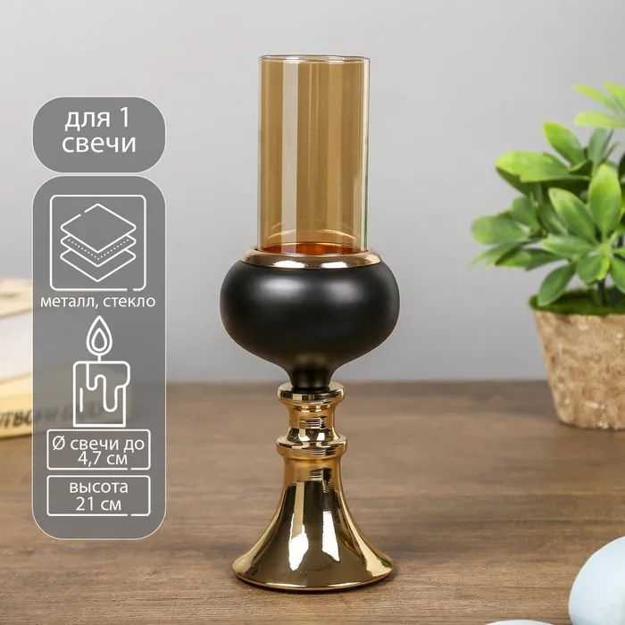 Подсвечник "Чашка" металл, 22,5х1,6 см, чёрный муар