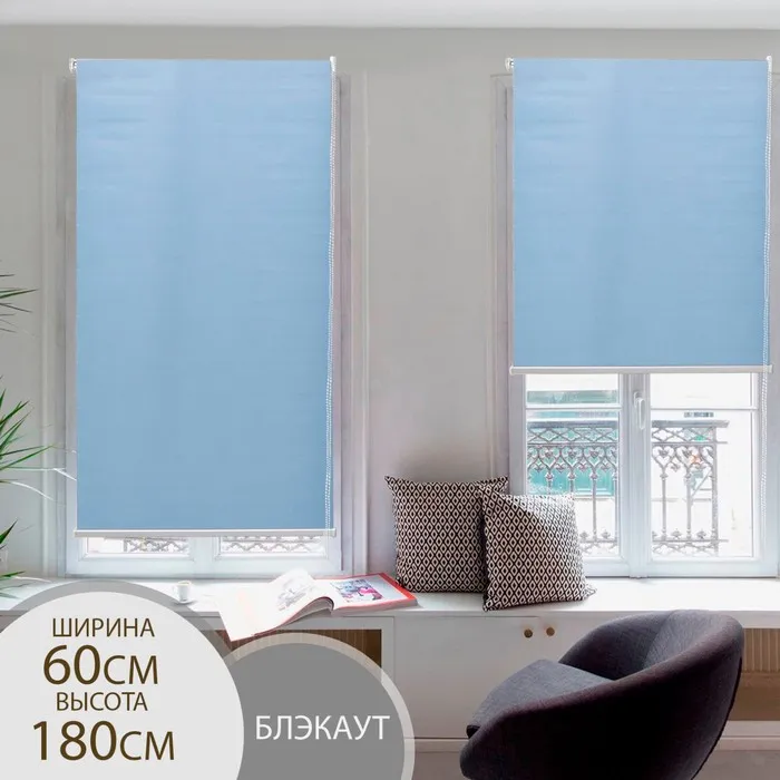 Штора рулонная «Нега», блэкаут, 60×180 см, серо-голубая