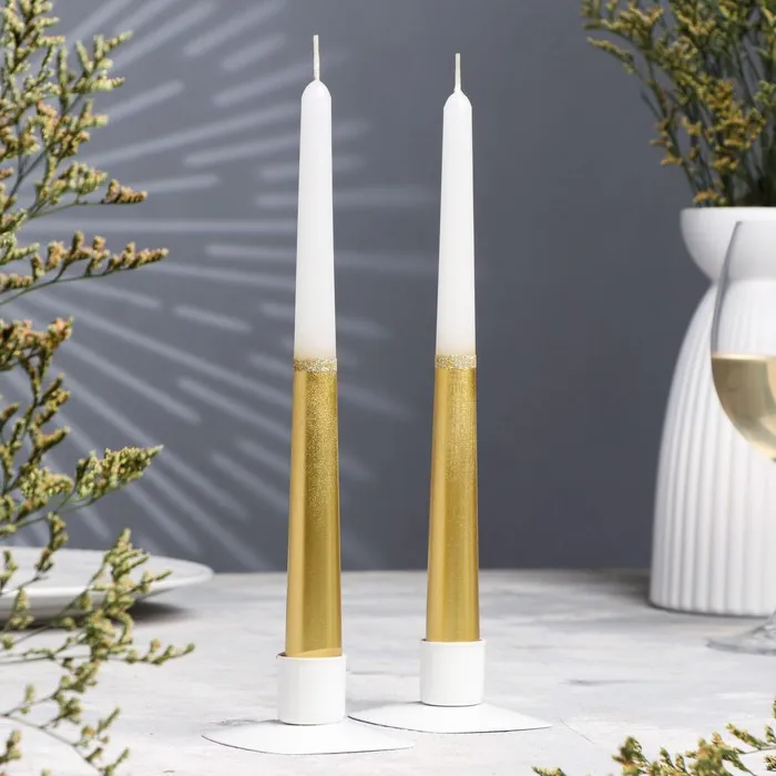 Набор свечей античных, 2.3×24.5 см, 5 ч, 55 г, 2 шт., золотисто-белый
