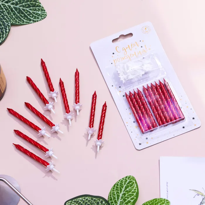 Свечи в торт «Спираль», 6 см, рубиновые, набор 10 шт.