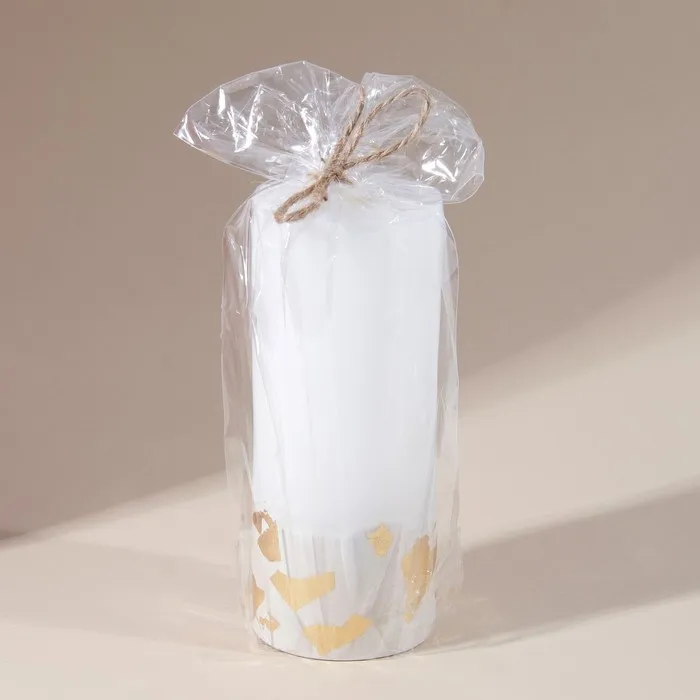Свеча интерьерная, белая с бетоном и поталью, столбик, 15 х 6 см