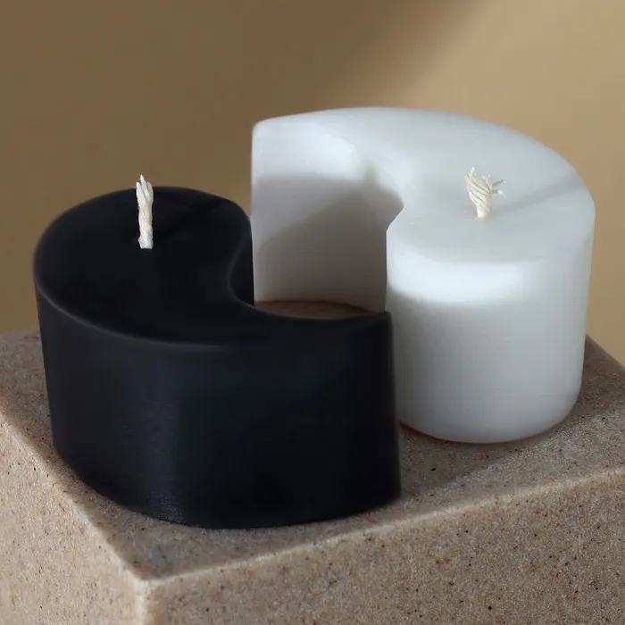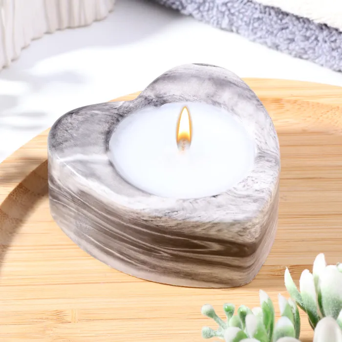 Свеча в подсвечнике из гипса «Сердце малое. Мрамор», 7×3 см, мрамор с чёрными полосками