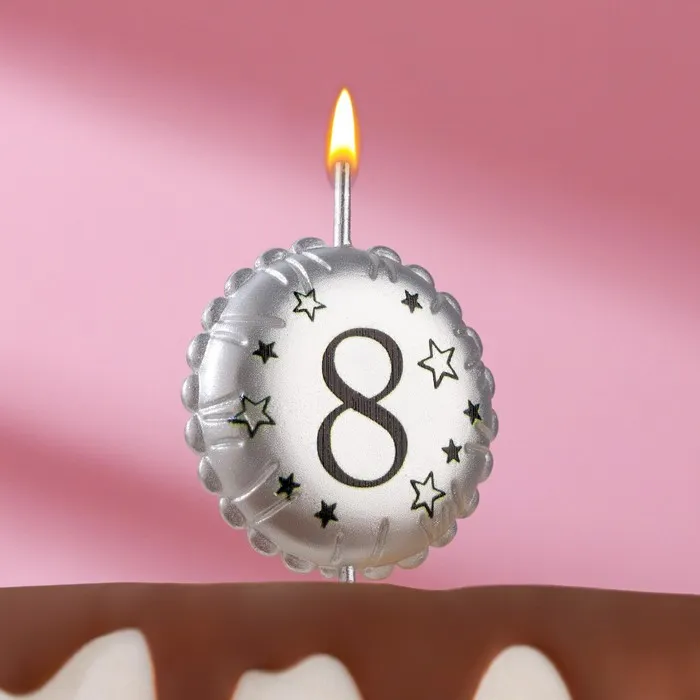Свеча в торт на шпажке «Воздушный шарик», цифра 8, 3.5 см, серебро