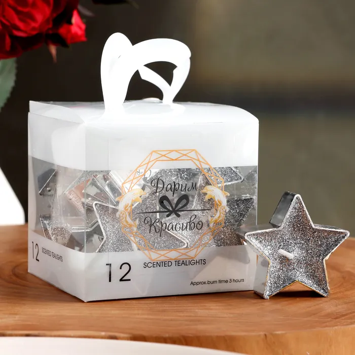 Набор свечей в гильзе «Звёздочка», 12 шт., серебряные блёстки