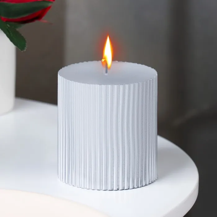 Свеча "Рельеф", 7×7.5см, серебряный металлик